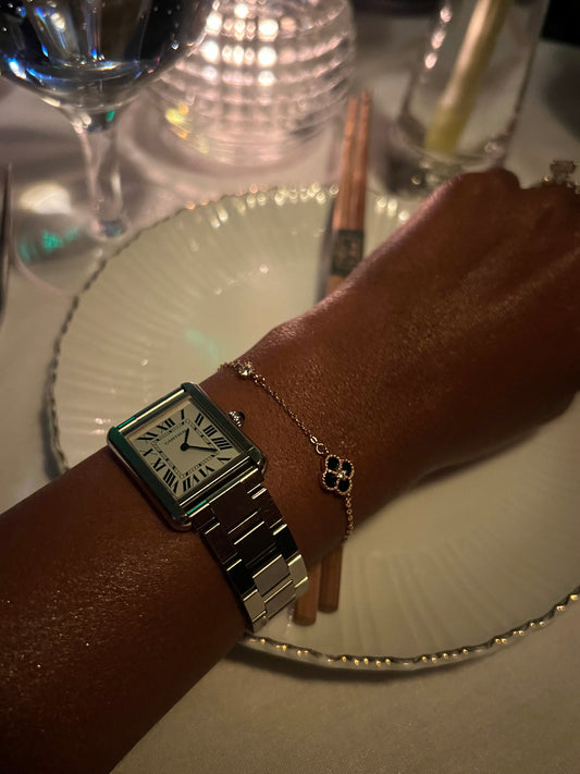 Rose Gold Black Agate Clover Bracelet